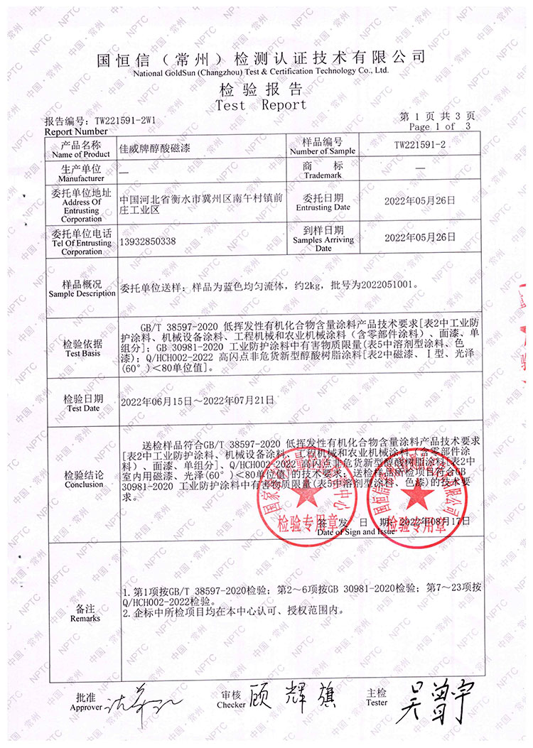 佳威醇酸磁漆檢驗(yàn)報(bào)告